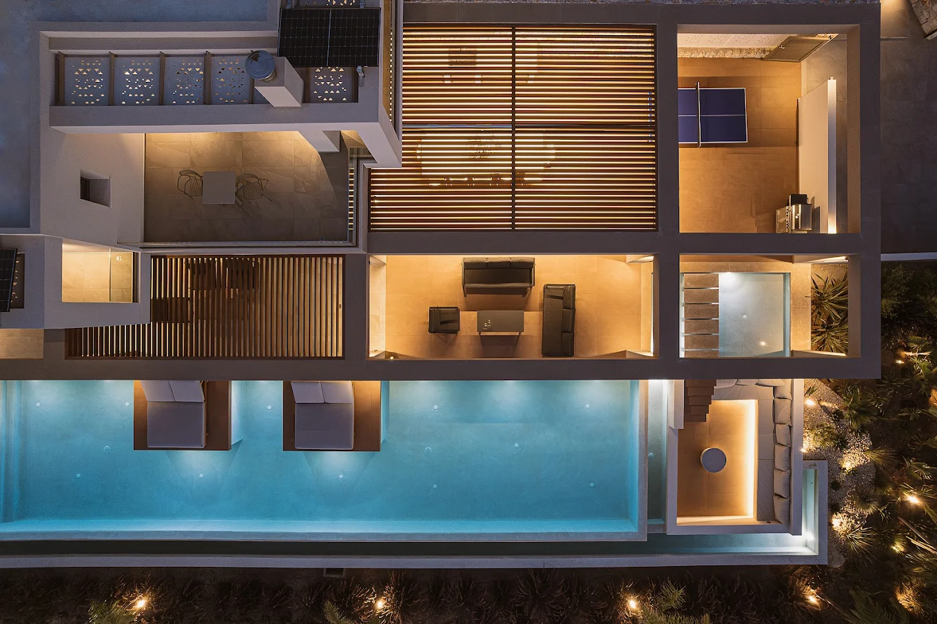 The property offers 253.15 sq.m. of high-end living space on a private plot of 1,260.97 sq.m., combining privacy, comfort, and a true year-round holiday lifestyle.